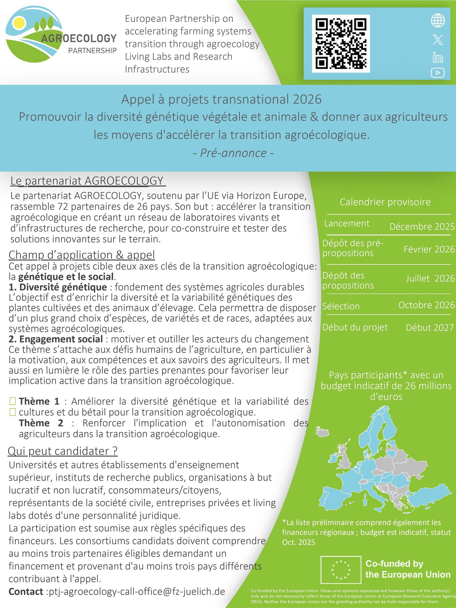 • Webinaire d’information pour les candidats : le 10 décembre 2025 de 10h à 13h CET.